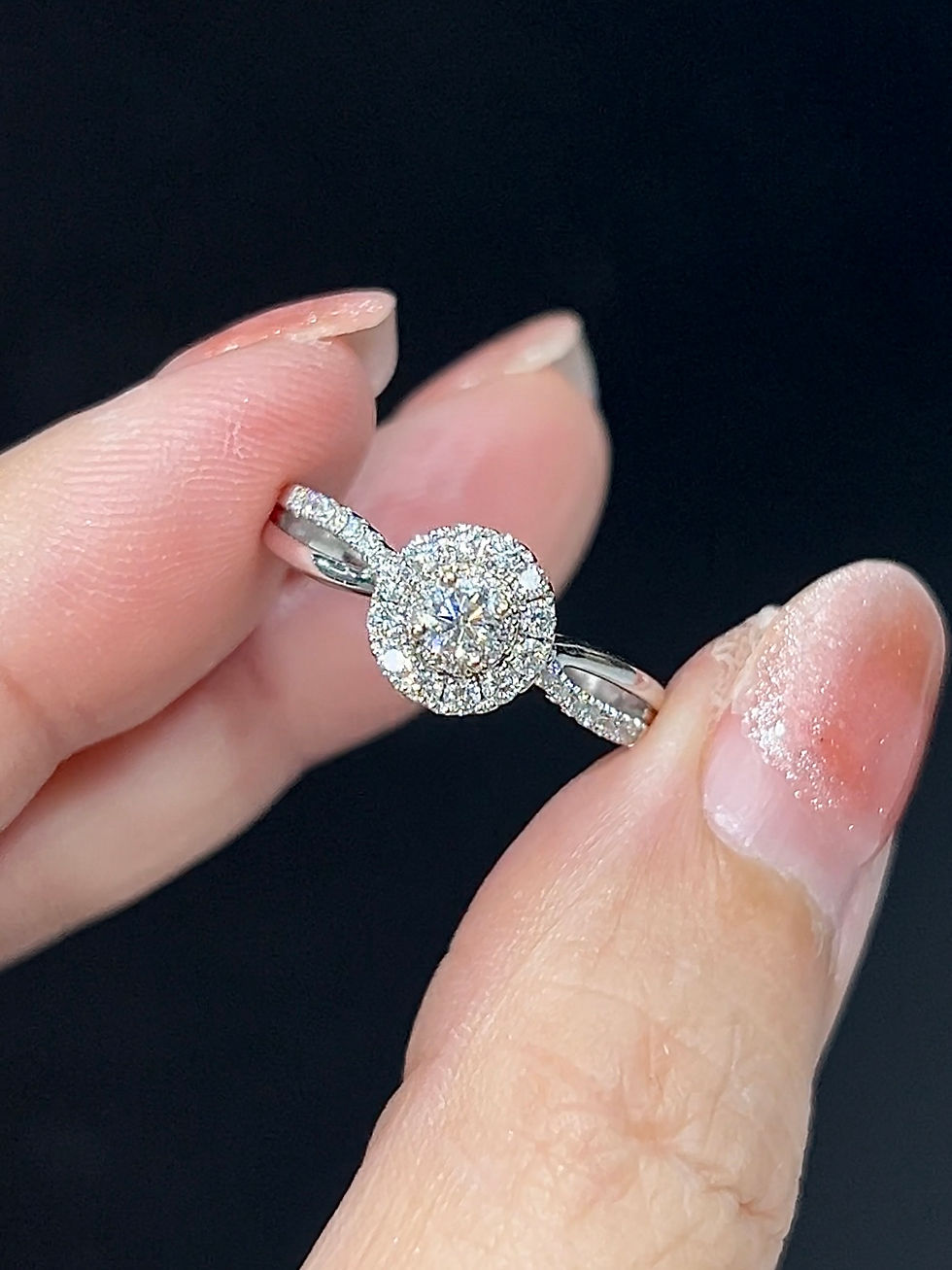 Halo diamond twisted shank ring 0.75 TCW. (GIA)